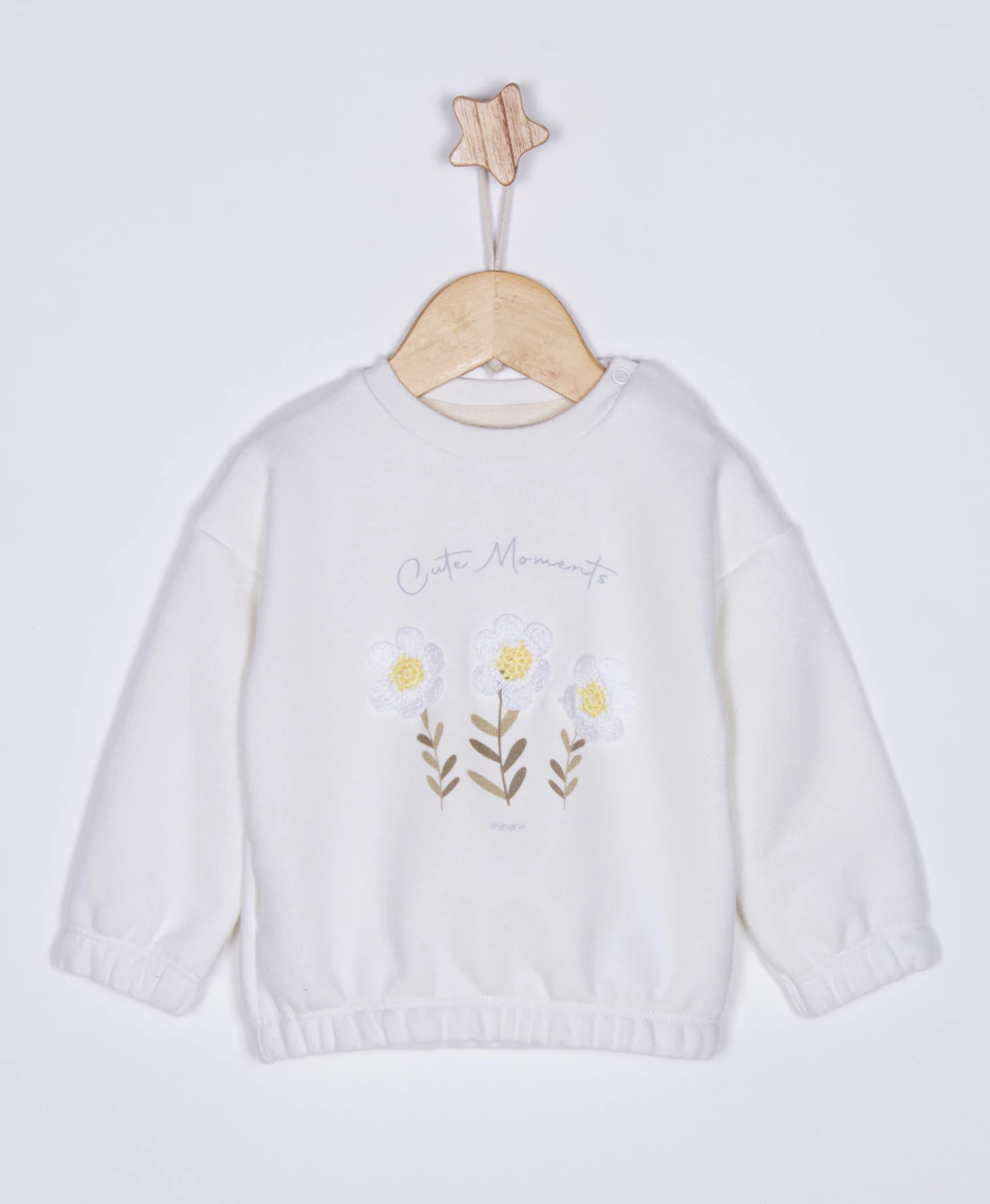 Buzo de rústico de algodón con aplique de flores bordadas y estampa, terminación en puños y cintura con elástico
